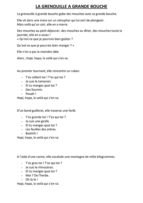 La plus célèbre des grenouilles, c’est elle, la Grenouille à grande bouche. Elle est curieuse, très curieuse. Elle veut tout savoir… « T’es qui toi ? Et tu manges quoi toi ? »…
